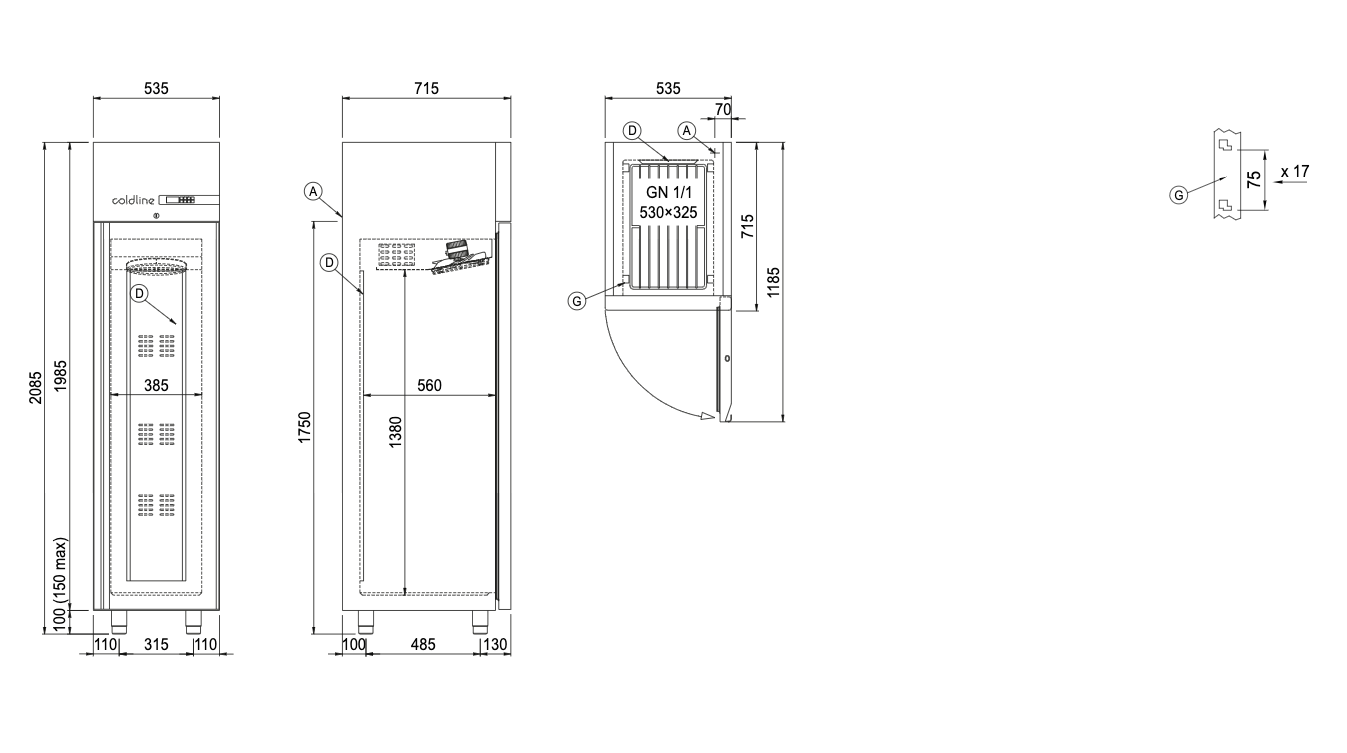 A modellek 350 litertől 1400 literig terjedő űrtartalommal rendelkeznek. Félajtókkal, üvegajtókkal, megfordítható ajtókkal és külön halak tárolására alkalmas-, valamint 2 vagy 3 különböző hőmérsékletű rekeszekkel kaphatók. Ezekbe az eszközökbe bele van építve a Cosmo technológia, amely lehetővé teszi, hogy a konyhában lévő összes Coldline készüléket csatlakoztassa a Cosmo HUB-hoz, így tudja figyelni valamint kezelni őket okostelefonjáról. Minden szekrény az FSS (Fast Service System/Gyors Szolgáltató Rendszer) szimbólummal van ellátva, és a hűtőtől független hűtőrendszerrel van felszerelve. Minden alkatrész könnyen hozzáférhető az egyszerű beavatkozás érdekében.
