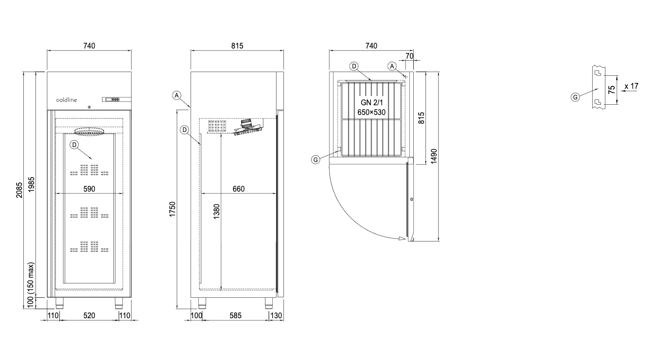A modellek 350 litertől 1400 literig terjedő űrtartalommal rendelkeznek. Félajtókkal, üvegajtókkal, megfordítható ajtókkal és külön halak tárolására alkalmas-, valamint 2 vagy 3 különböző hőmérsékletű rekeszekkel kaphatók. Ezekbe az eszközökbe bele van építve a Cosmo technológia, amely lehetővé teszi, hogy a konyhában lévő összes Coldline készüléket csatlakoztassa a Cosmo HUB-hoz, így tudja figyelni valamint kezelni őket okostelefonjáról. Minden szekrény az FSS (Fast Service System/Gyors Szolgáltató Rendszer) szimbólummal van ellátva, és a hűtőtől független hűtőrendszerrel van felszerelve. Minden alkatrész könnyen hozzáférhető az egyszerű beavatkozás érdekében.