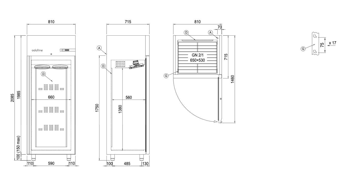 Coldline A80/1MU Master 650 literes háttérhűtő, GN 2/1 polccal, -2 +8°C