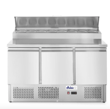 Háromajtós salátahűtő pult emelt GN bemutatórésszel 380L
