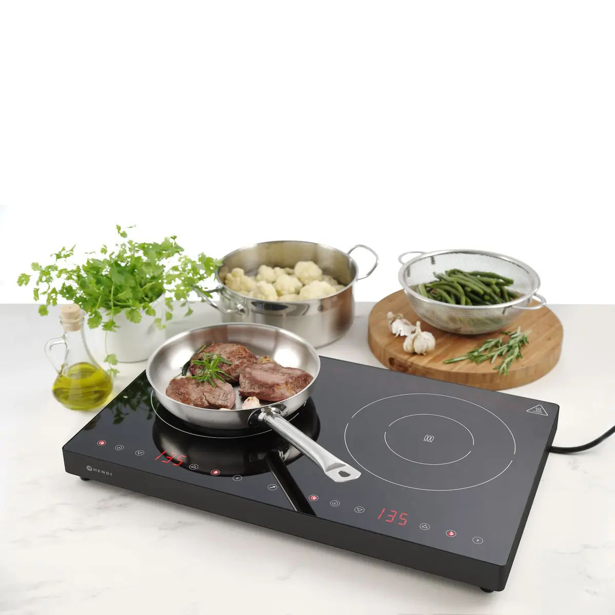 Letisztult dizájn, látványfőzéshez alkalmas. Nagyon lapos ház, fekete bevonatú rozsdamentes acél kerettel. Üvegkerámia főzőfelszín, beépített digitális kijelzővel. Érintésérzékeny vezérlés, a teljesítmény 8 szintben állítható. A boost funkció ideiglenesen energiát tol át a jobb főzőlapról a balra, mely teljesítménye így eléri akár a 2000 W-ot. Míg a boost funkció aktív, a bal oldali főzőlap teljesítménye 1800W vagy 2000W. Míg a boost funkció aktív, a bal oldali főzőlap teljesítménye 1700W vagy 1500W. Hőmérséklet tartomány: 60-240°C. 120 és 220 mm átmérőjű serpenyőkhöz használható. 0-180 perc közötti időzítő funkcióval. Túlmelegedés elleni elektronikai védelem. A főzőlap megengedett maximális terhelése: 2x15 kg.