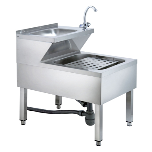 Mélyhúzott kézmosó- és kiöntő medence, anyaga: rozsdamentes acél, Keverőszeleppel, szifonnal és csappal, szintezhető lábakkal, Méret: 500x700x853 mm, Anyagvastagság: 0,8 mm, származási hely: Kína.