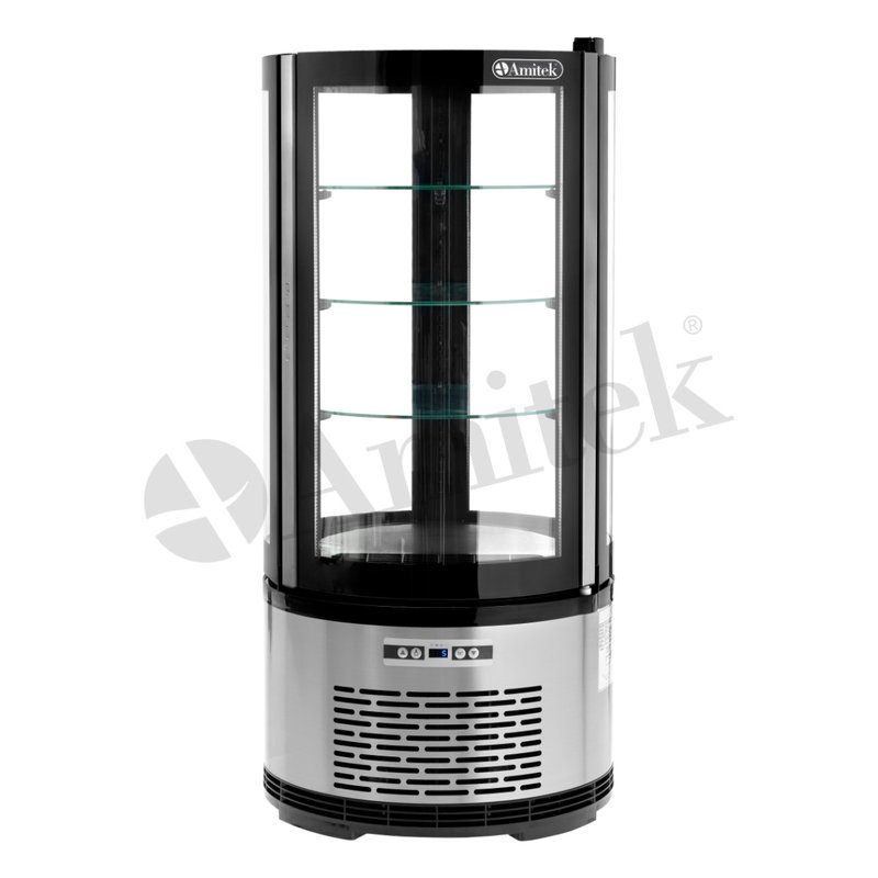AMITEK AK100ETR pultra helyezhető süteményes vitrin, hűtő 100L, kerek